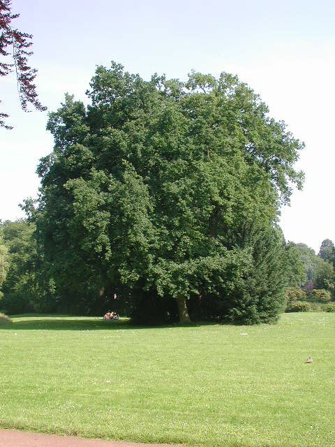 Auf der ausgedehnten Rasenpartie im Oberen Garten ist bereits in der Frühphase der Gartenanlage ein Clump angelegt worden, der ursprünglich nur durch drei Stileichen gebildet wurde.