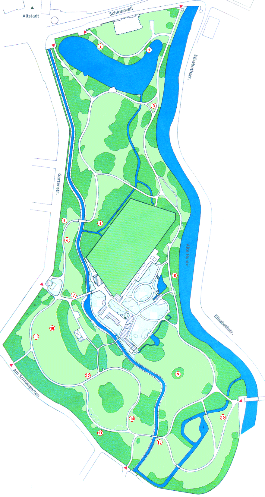 Hauptinhaltsverzeichnis   Großer Übersichtsplan und Gartenbereiche Geschichte, Funktionen und ästhetische Konzeption des Gartens Virtuelle Rundgänge, Rundblicke, Durchblicke und Ansichten von früher und heute Besondere - v.a. architektonische - Ausstattung Botanisches Impressum, Literatur, Danksagung und mehr